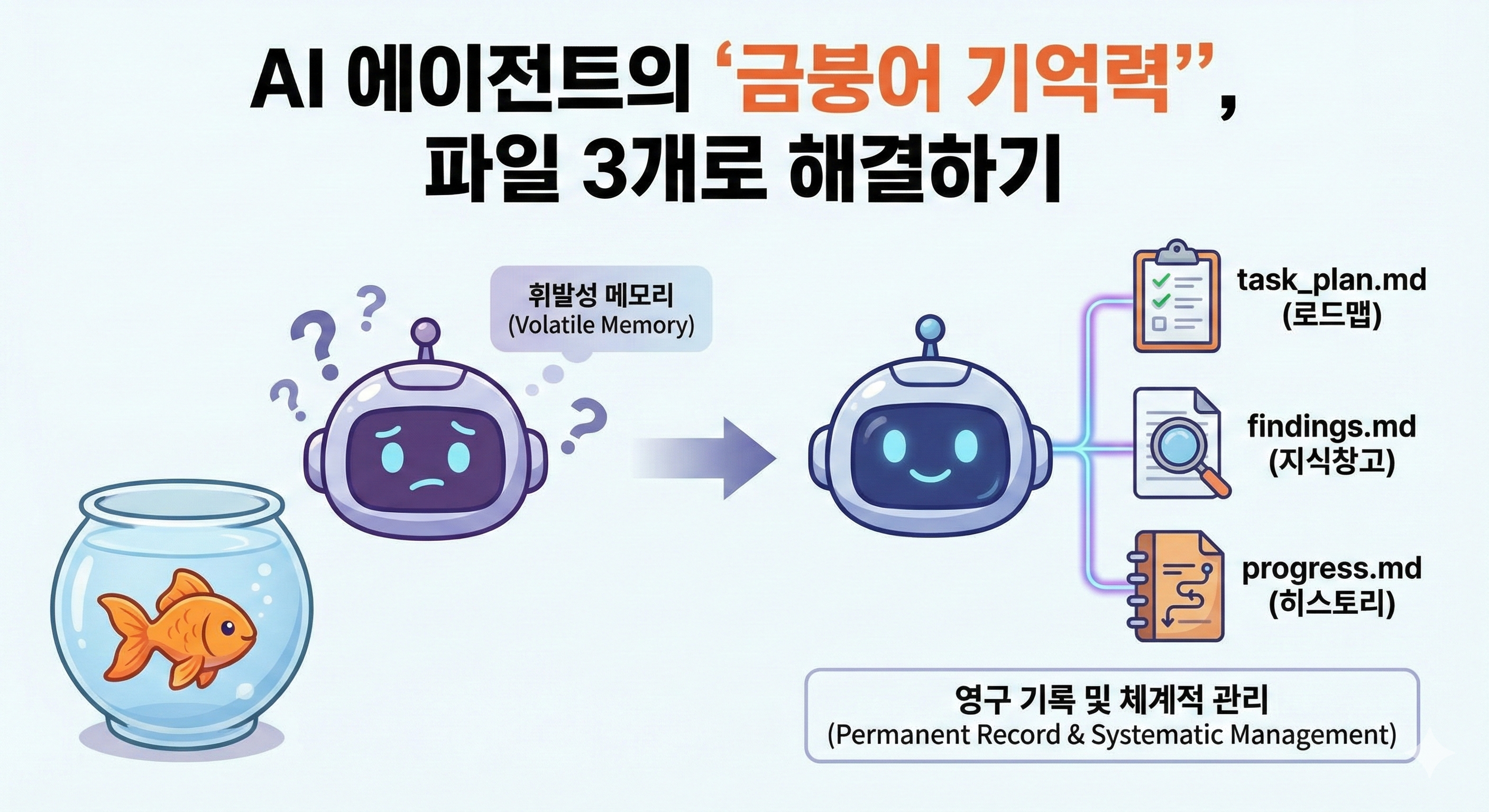 이건 AI의 **컨텍스트(기억력)**가 마치 RAM처럼 휘발성이기 때문인데요. 이걸 해결하기 위해 20억 달러 가치의 스타트업 'Manus'가 쓰는 비결을 우리 프로젝트에 바로 적용해 봅시다!